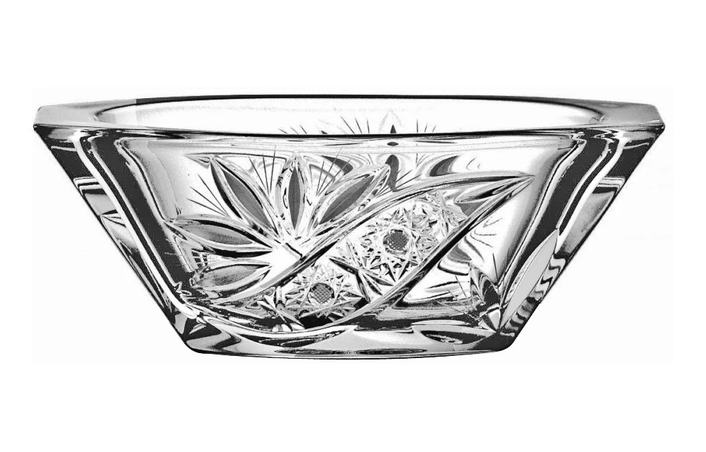 Ovális alaku kisebb kristály tál, melyet mogyoró, és más kisebb sós-édes rágcsálnivaló kínálásakor használhatunk. A termék díszítését cégünk munkatársai kézzel alakították ki, Ajkán.