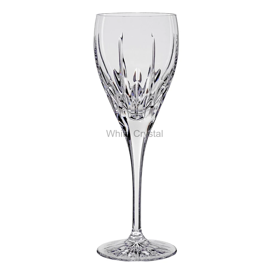 Boros kristály kehely modern mintával, melyet borok kitöltéséhez használhatunk. A termék díszítését cégünk munkatársai kézzel alakították ki, Ajkán.