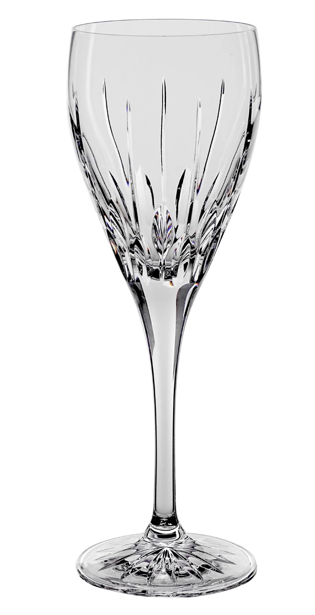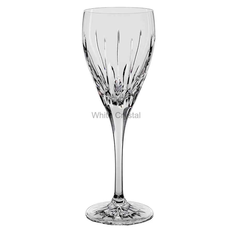 Boros kristály kehely modern mintával, melyet borok kitöltéséhez használhatunk. A termék díszítését cégünk munkatársai kézzel alakították ki, Ajkán.