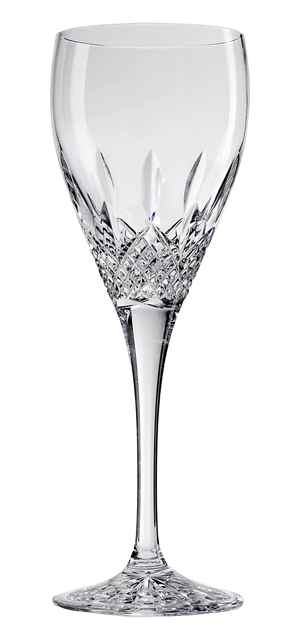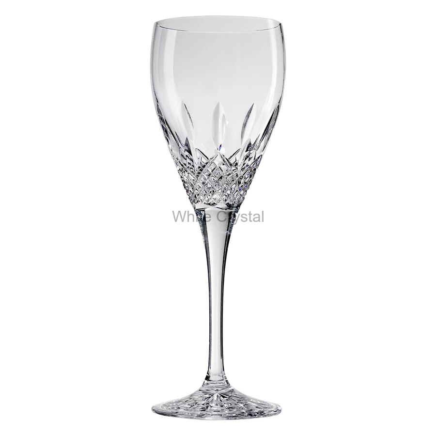 Boros kristály kehely modern mintával, melyet borok kitöltéséhez használhatunk. A termék díszítését cégünk munkatársai kézzel alakították ki, Ajkán.