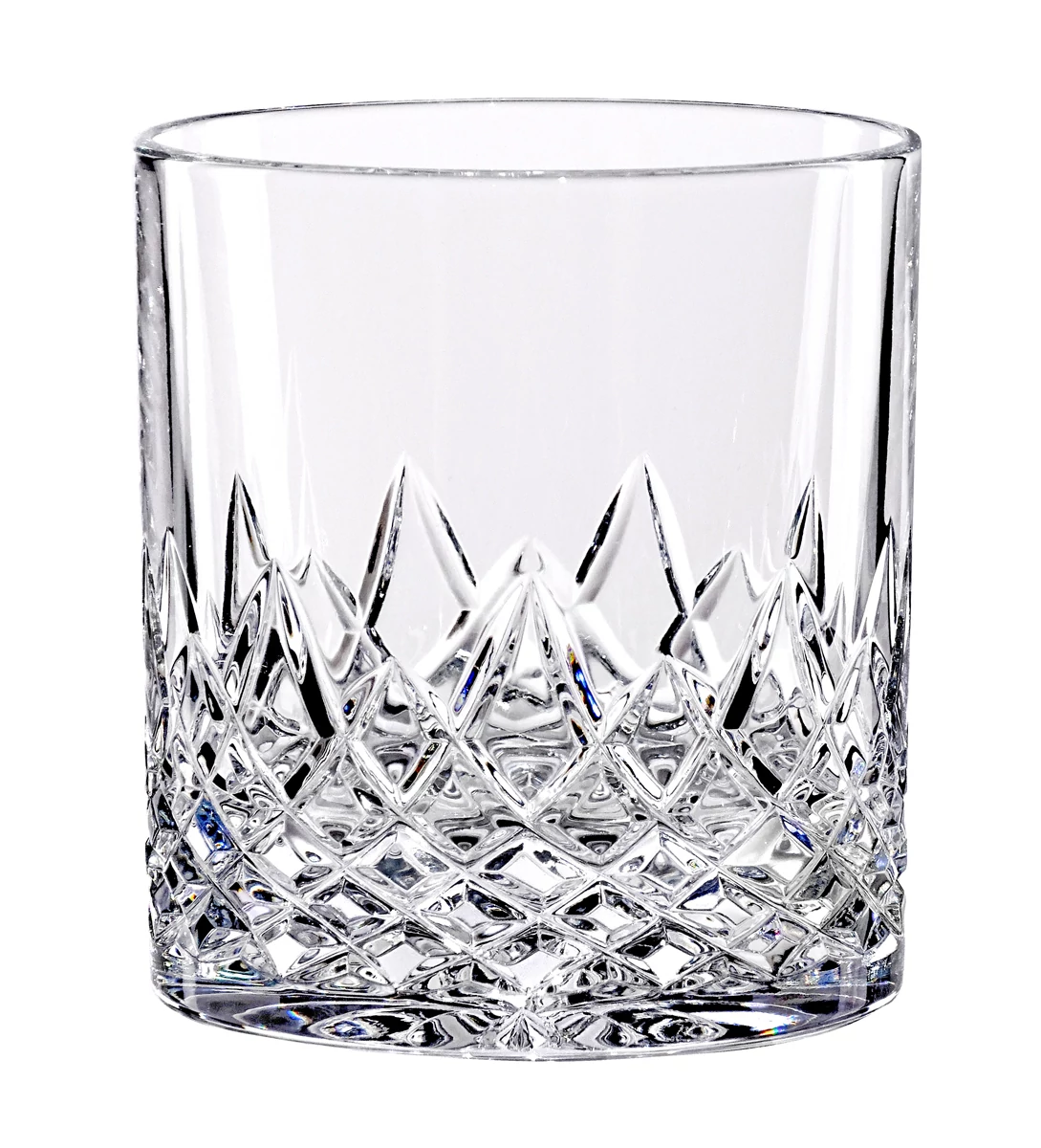 Whisky kristály pohár modern mintával, elsősorban whisky szervírozásához, de könnyen használható más italokhoz is. A termék díszítését cégünk munkatársai kézzel alakították ki, Ajkán.