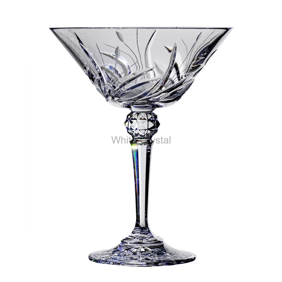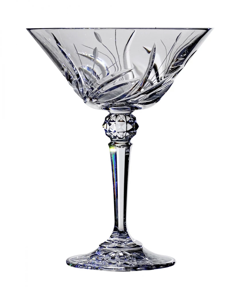 Ólomkristály martinis pohár, martinik felszolgálásához. A termék díszítését cégünk munkatársai kézzel alakították ki, Ajkán.